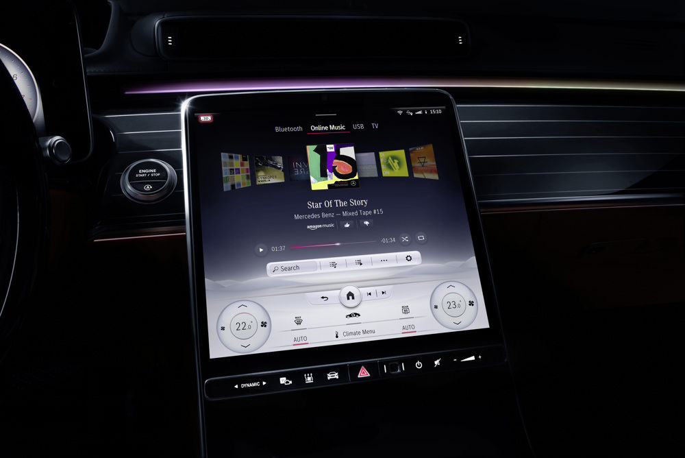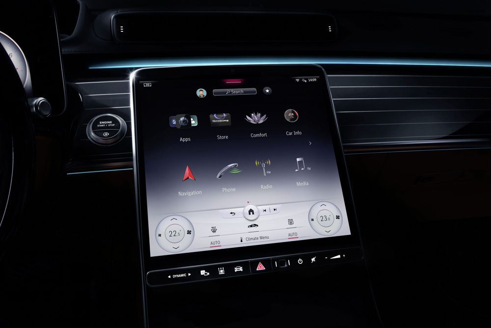 Пять крупных экранов с высоким разрешением, в частности с технологией OLED (organic light-emitting diode) - органических светоизлучающих диодов, датчиками давления и тактильным подтверждением сенсорных команд делают управление S-Class и функциями комфорта еще проще. При этом, технология OLED потребляет на 30% меньше энергии, чем LCD.